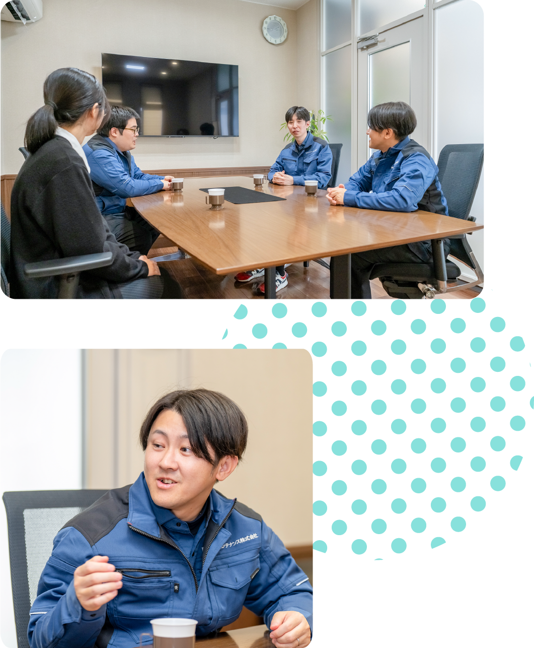 私もKさんとほとんど同じですね。上下水道関係は安定した業種で、景気に左右されないところに魅力を感じて入社を決めました。長く働き続けることができる環境だと感じたことも、決め手の一つです。